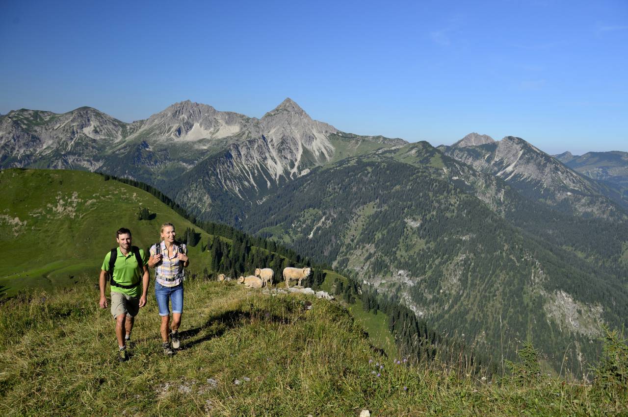 Beim Wandern im Tannheimer Tal imponiert die Natur mit faszinierenden Eindrücken: die ursprüngliche Bergwelt mit dem 2.249 Meter hohen Gaishorn als höchsten Gipfel, die blühenden Wiesenblumen, Tiere auf den Almen, tiefblaue Seen, klare Bergluft. Auf den Wanderungen laden über 30 bewirtschaftete Hütten zur Rast ein.